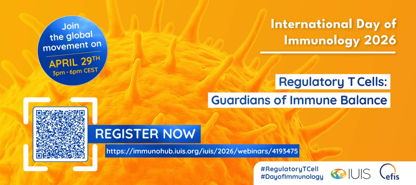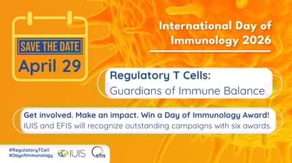 Every year on 29 April, IUIS and EFIS bring the global immunology community together to celebrate the International Day of Immunology (DoI). A key highlight of this campaign is the official Day of Immunology webinar, featuring outstanding speakers and timely scientific discussions designed to raise awareness of immunology and explore the annual theme.