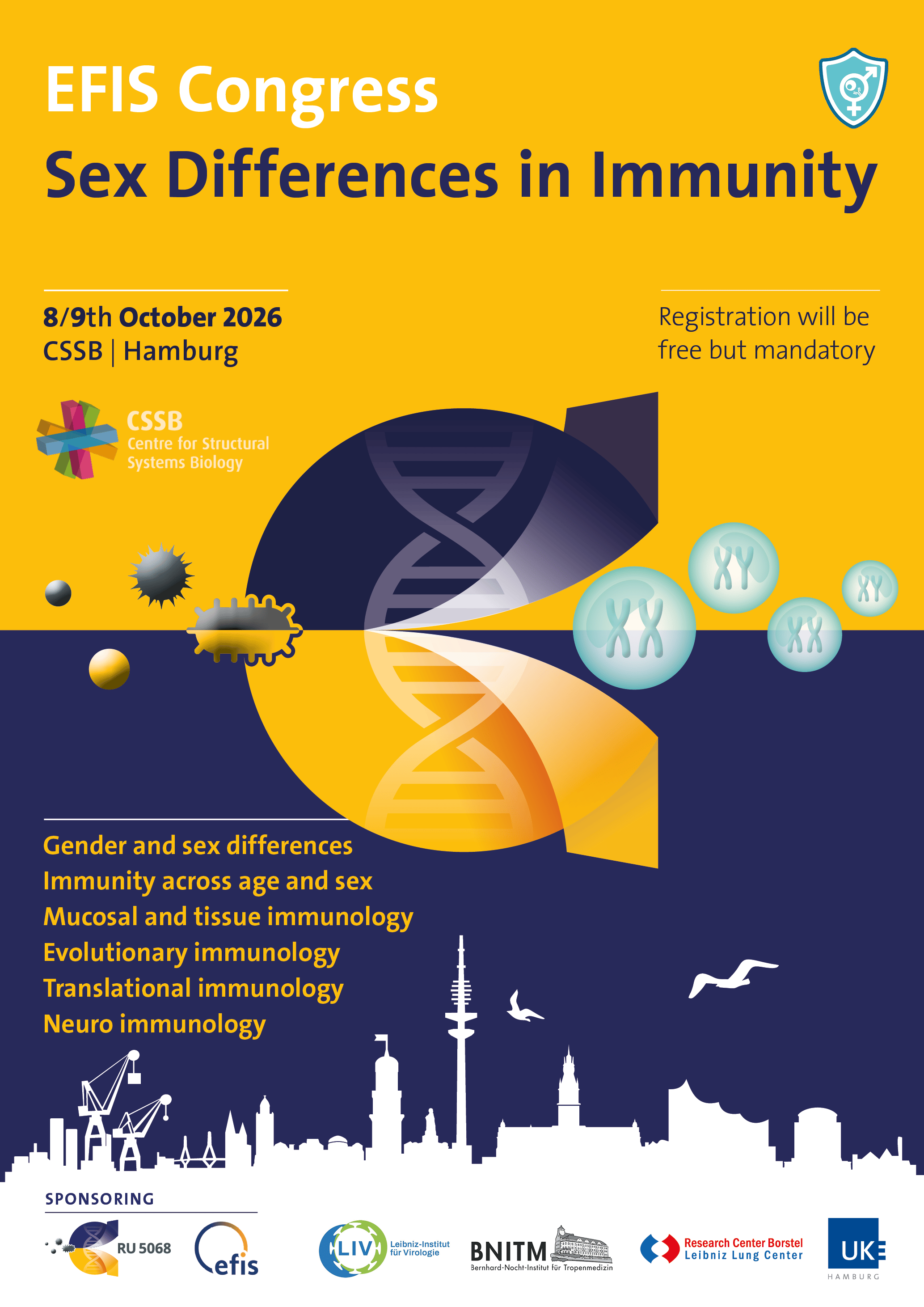 2nd Annual Meeting of the EFIS - IL Study Group on Sex Differences in Immunity will take place in Hamburg on 8–9 October 2026! More details will follow soon. More information about the study group can be found here.